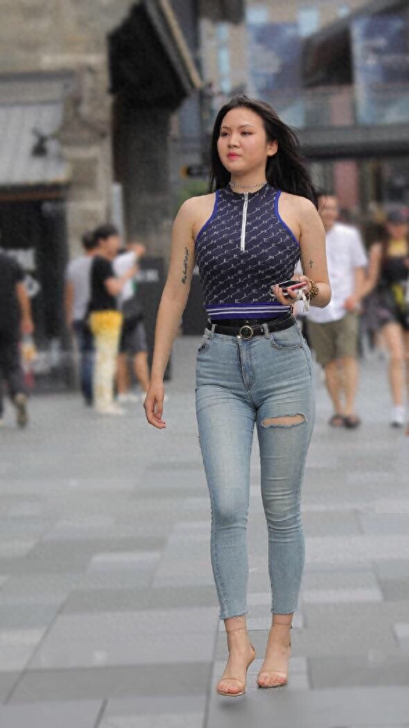 牛仔裤永远不落伍, 丰满小姐姐配紧身牛仔裤, 真的是太美了